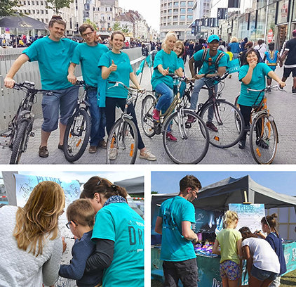 10-dagarsturnén inkluderade en cykelrundresa genom Belgiens huvudstad Bryssel, där team besökte mer än 100 butiker som fick buntar med häften så att de kunde dela ut dem till sina kunder. Cyklister stannade också vid Porte de Namur-tunnelbanestationen, vid Place de la Monnaie-torget och gågatan Rue Neuve, där tusentals människor passerar varje timme. En sjuksköterska som kontaktades av DFW-teamet vårdade patienter som ofta var drogmissbrukare eller till och med langare. Hon tog omedelbart häften till dem och fick webbplatsadressen för att kunna beställa fler när hon behöver det. En annan var så stödjande av teamets arbete att han tog en av de grönblå bärkassarna fulla av häften och började dela ut dem från butik till butik.